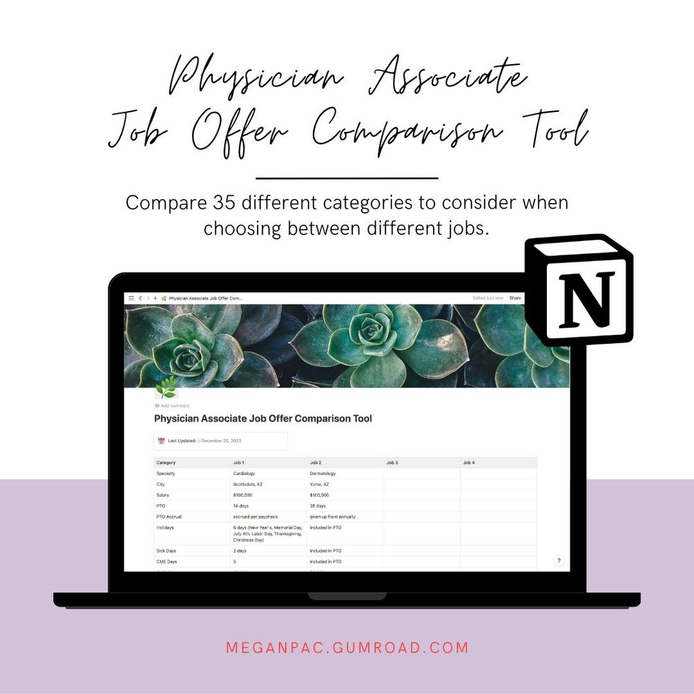 Physician Associate Job Offer Comparison Tool